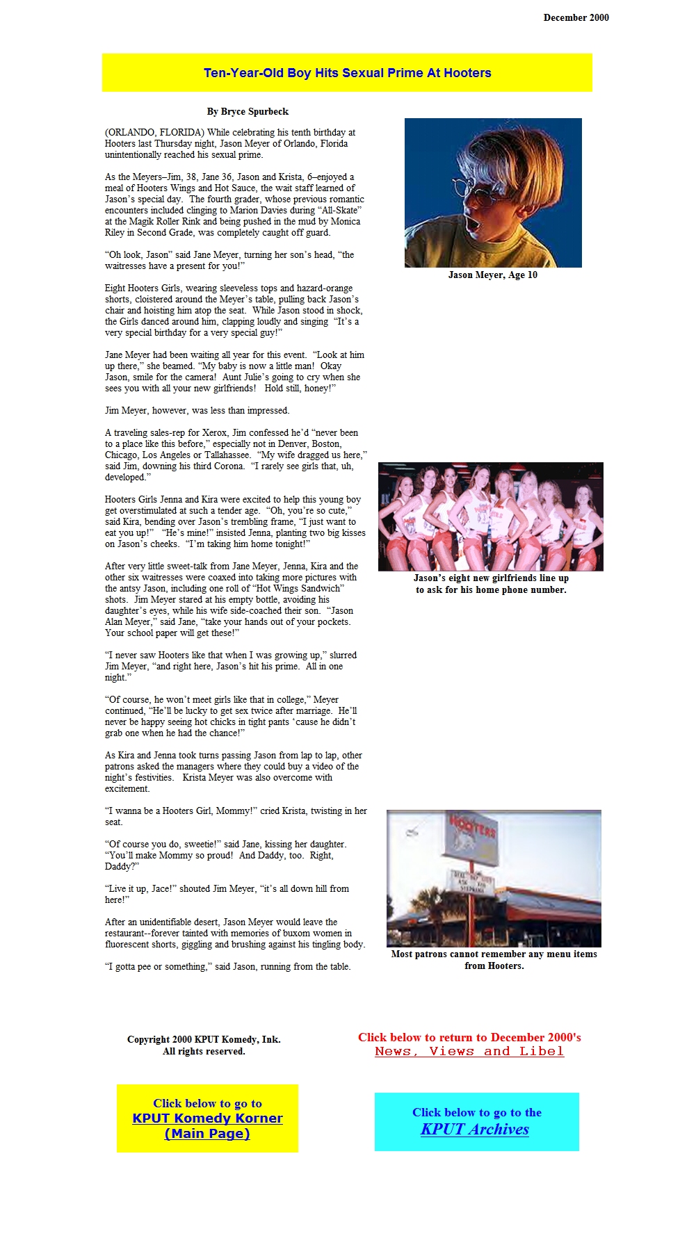Ten Year Old Boy Hits Sexual Prime At Hooters