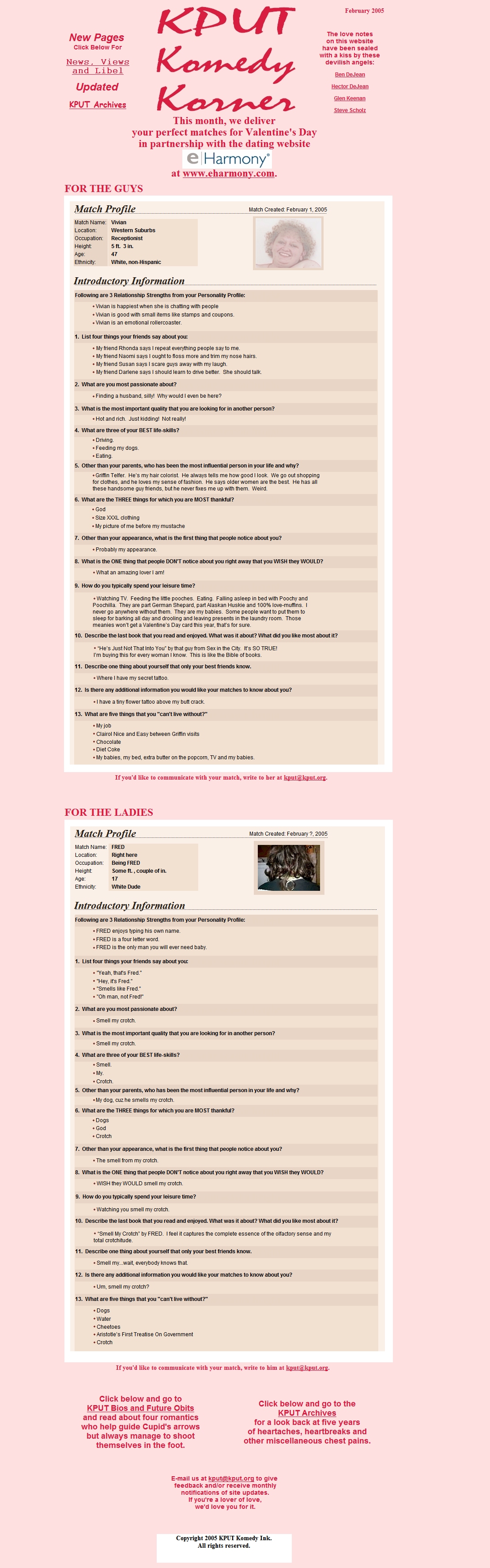 KPUT Presents: Your Perfect Valentine's Day Matches From eHarmony.com